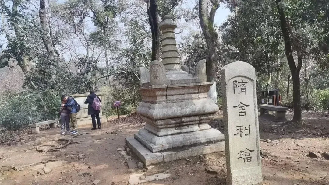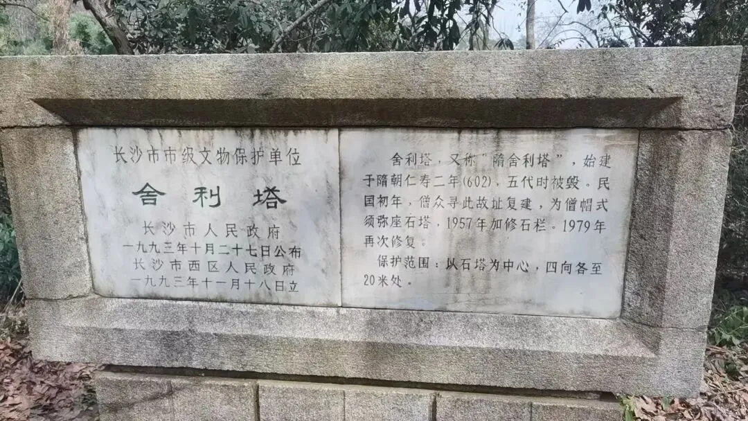 继续往上走,路边有一座古朴的石塔——隋舍利塔。这塔背后有个动人的故事。相传隋文帝杨坚出生时,一位叫智仙的尼姑对他的父亲说,这孩子有福相,有天佛庇佑,但不能养在家中。就这样,杨坚由智仙抚养到三十岁才回家,临别时,智仙送给他数百颗舍利子,嘱咐他“以此福苍生”。杨坚当上皇帝后,为感念养育之恩,诏令全国名山建塔,将这些舍利分藏各处。岳麓山这座塔建于隋仁寿二年(602年),五代时被毁,民国初年由麓山寺僧重建。