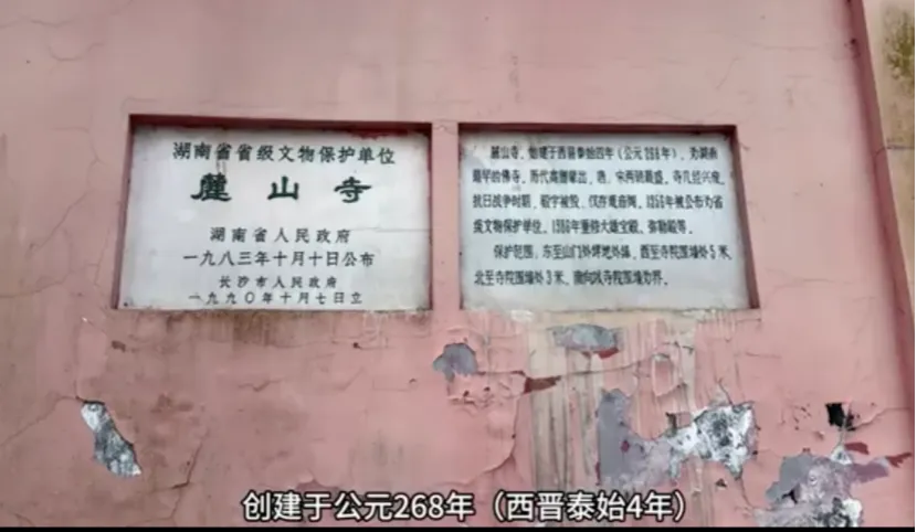 再往上走,便到了麓山寺。这是佛教传入湖南最早的遗迹,由敦煌菩萨竺法崇的弟子创建于公元268年,也就是西晋泰始四年。山门上的对联写着:“汉魏最初名胜,湖湘第一道场”,这句话毫不夸张。从晋代到现在,1700多年的香火从未断绝,虽然屡遭兵火,但每次都能重建重生。
