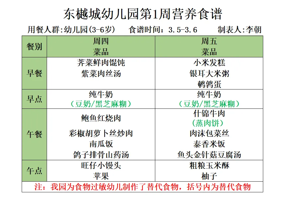 第400期【长沙县特立教育集团】东樾城幼儿园一周营养食谱