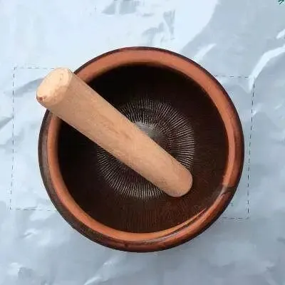 生姜、生米、生茶叶,这是"三生"。再加上炒熟的花生、芝麻,放进特制的陶钵里。用一根长长的木棒(擂茶棒),顺着钵壁用力研磨,直到磨成细腻的糊状。最后冲入滚烫的开水,"滋啦"一声,香气瞬间炸开。喝的时候撒点炒米,咸香浓郁,一碗下肚,额头微微冒汗,通透。