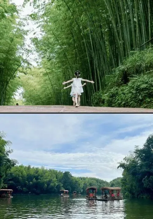 拍照的话,别穿绿色的衣服,会和背景融为一体。穿白色、米色或者浅蓝色的棉麻衣服,站在竹林光影里,不用修图都好看。光线最好的时候是清晨或者下午四点后,光是软的。