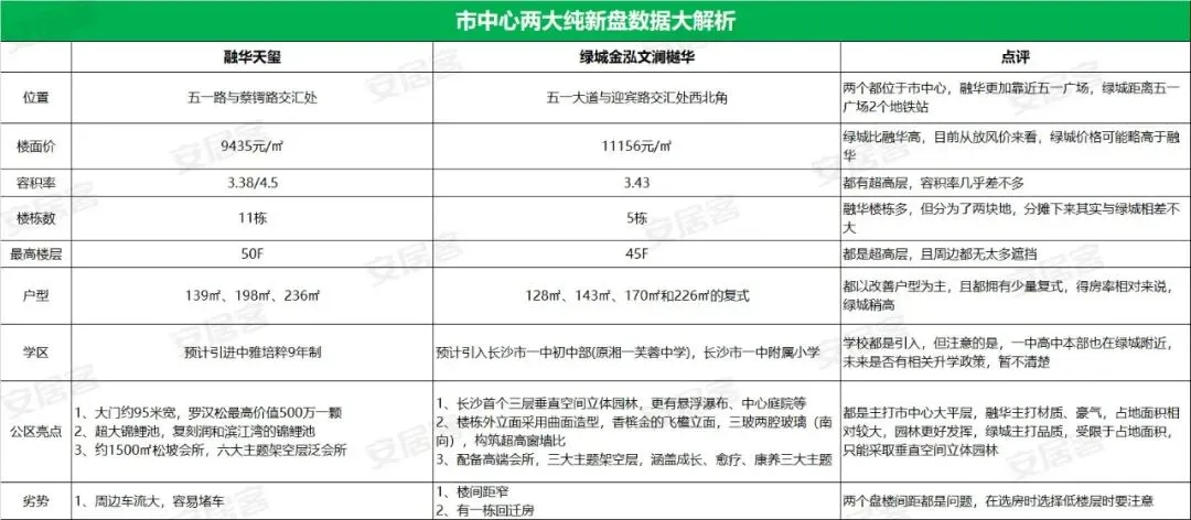 绿城金泓文澜樾华,以独特的市中心位置,放眼整个长沙,目前能称为竞争对手的只有同样位于长沙市中心的融华天玺,安sir也是拿着目前收集到的资料,将两个楼盘进行了对比,具体如下: