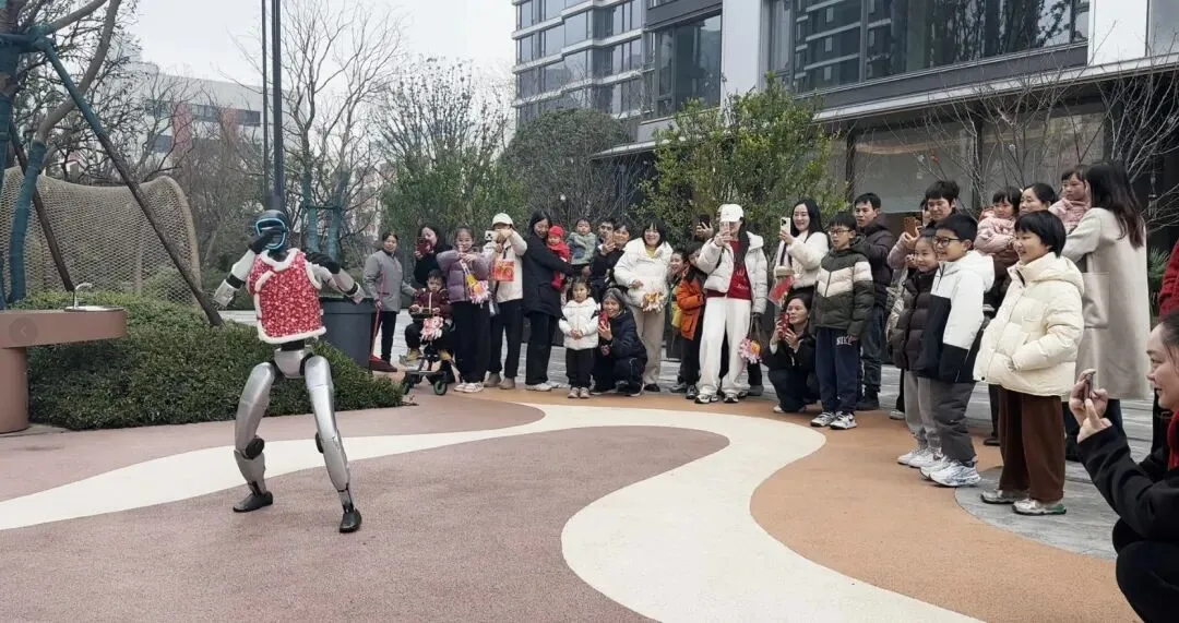 长沙一小区元宵节现春晚同款机器人,看呆萌娃,物业:表演了舞蹈、武术,小朋友很喜欢