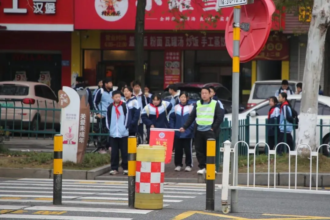 清晨时分,校门口秩序井然。学校领导、教师、安保人员早早到岗,文明引导、细心守护,为同学们平安返校保驾护航。更有家长志愿者参与护学岗执勤,在马路边认真值守、暖心护航,用责任与爱心筑起一道安全防线,家校同心,守护成长。