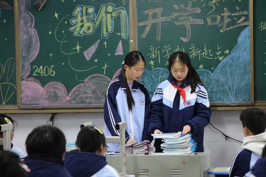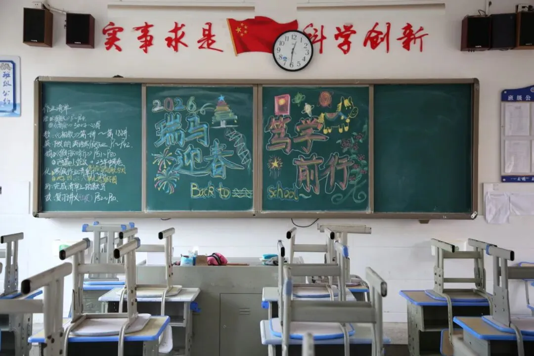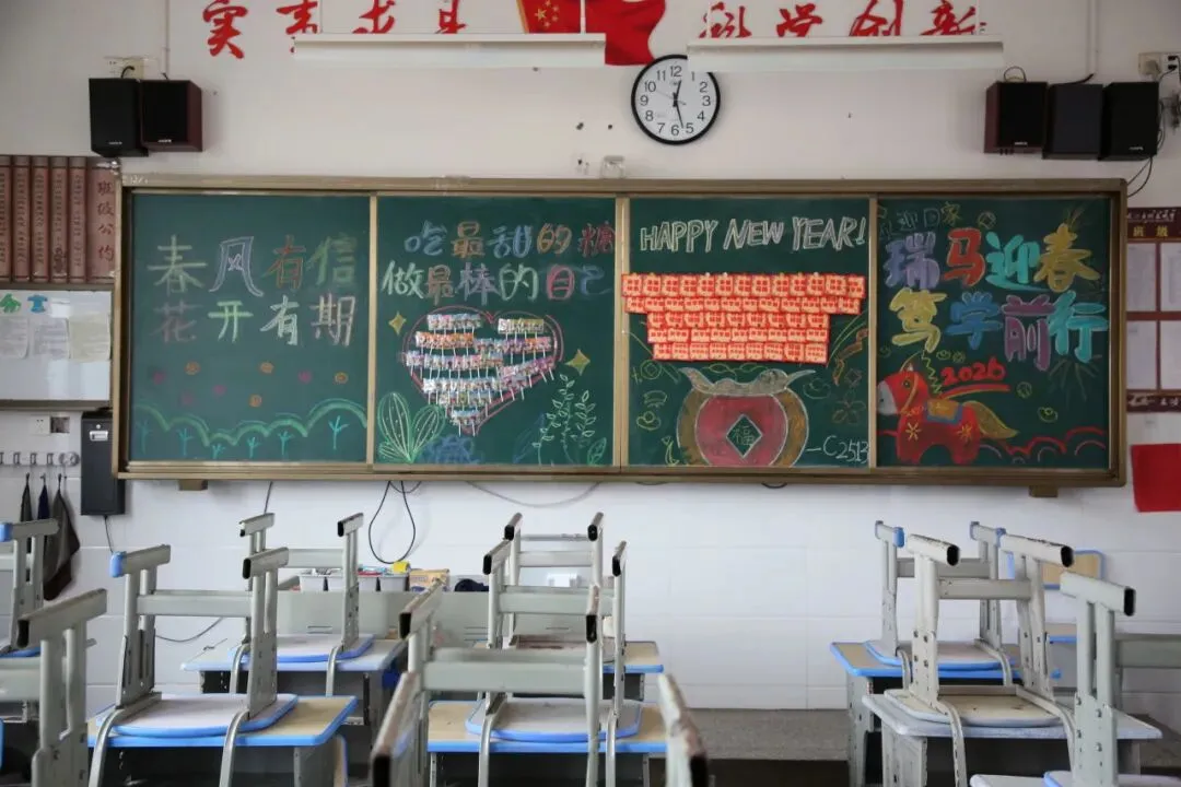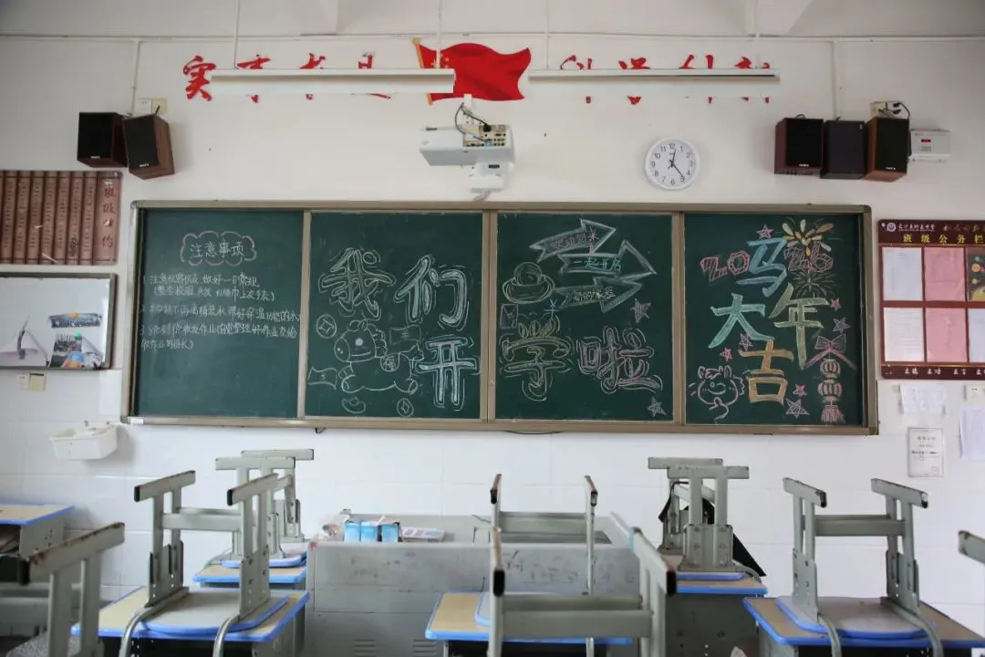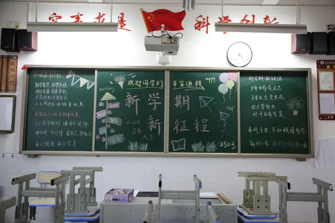 走进教室,更是一派温馨有序的景象。精心布置的黑板报色彩明亮、主题鲜明,字里行间满是对新学期的期待与祝福,让教室焕然一新、充满活力。