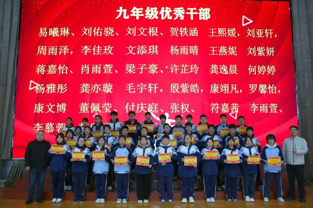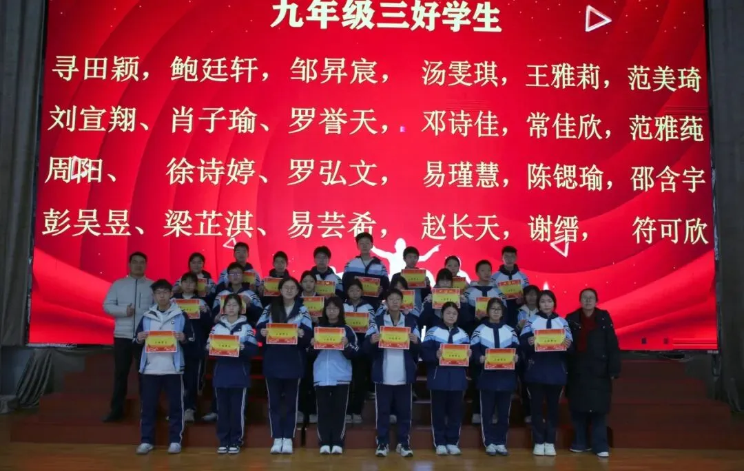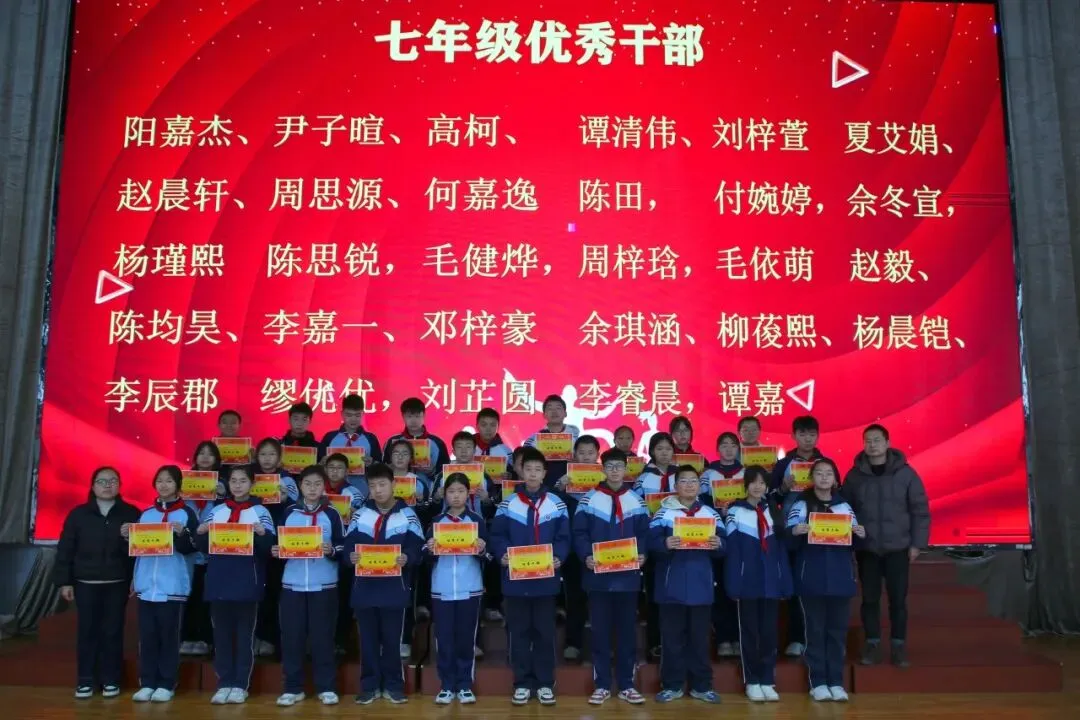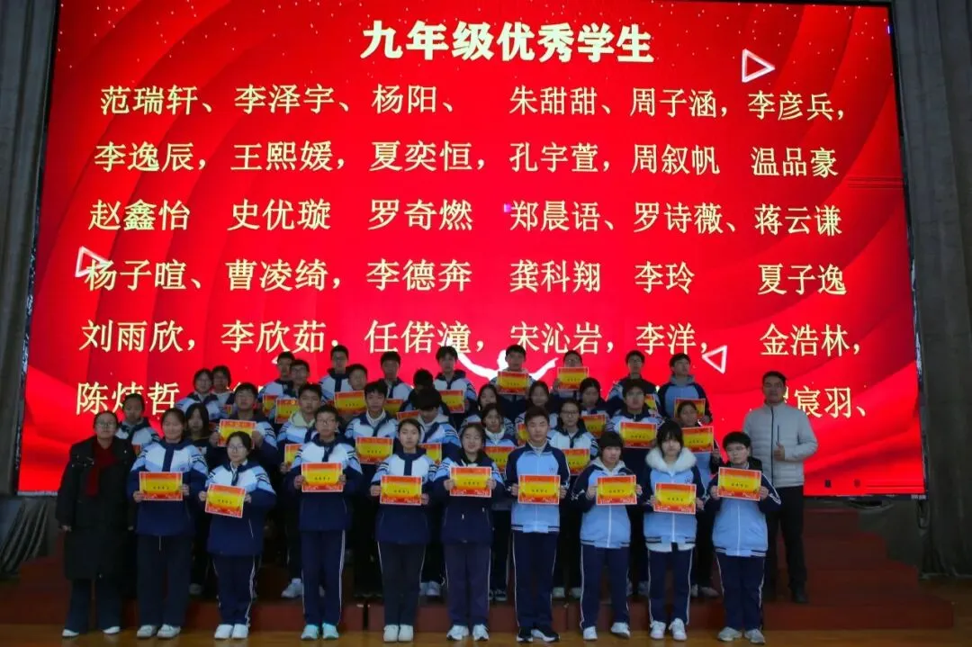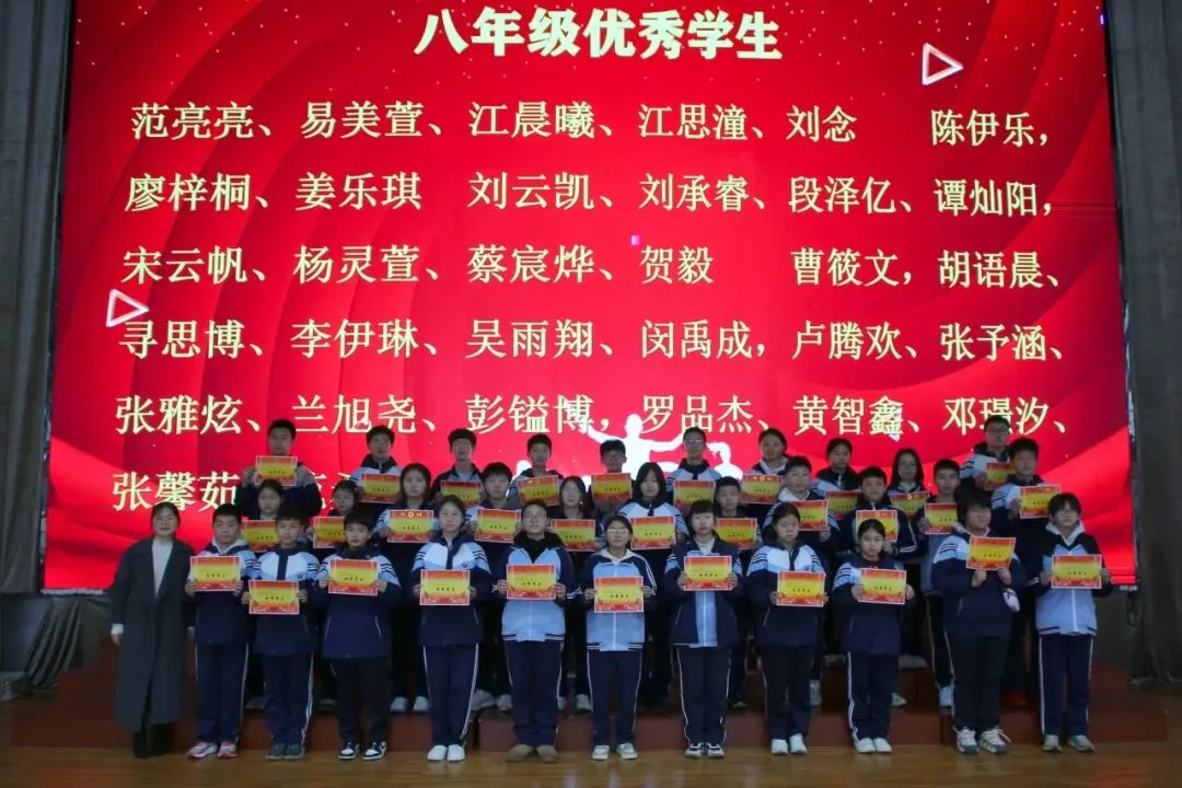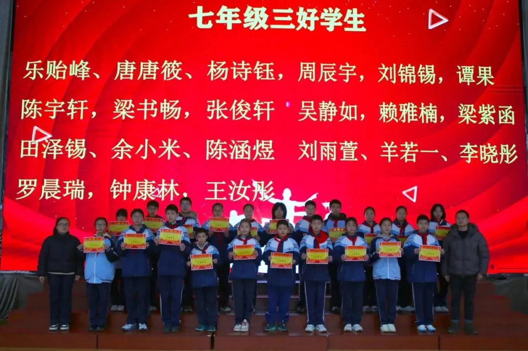 讲话尾声,学校举行了表彰仪式,对各年级涌现出的三好学生、优秀学生、优秀班干部、书香少年等先进个人进行现场表彰。学校为受表彰同学颁发荣誉证书,并合影留念,勉励他们珍惜荣誉、戒骄戒躁、再接再厉,在新学期再创佳绩。同时号召全体同学以先进为榜样,见贤思齐、严于律己、勤奋进取,在校园中营造比学赶超、文明和谐的良好氛围。