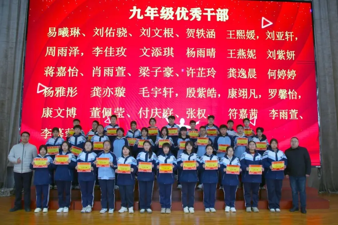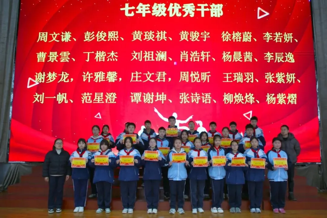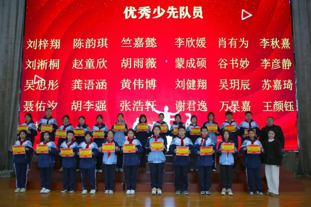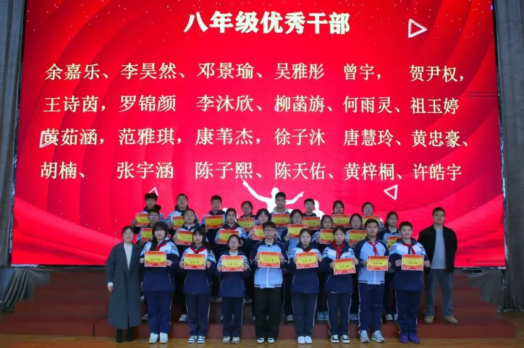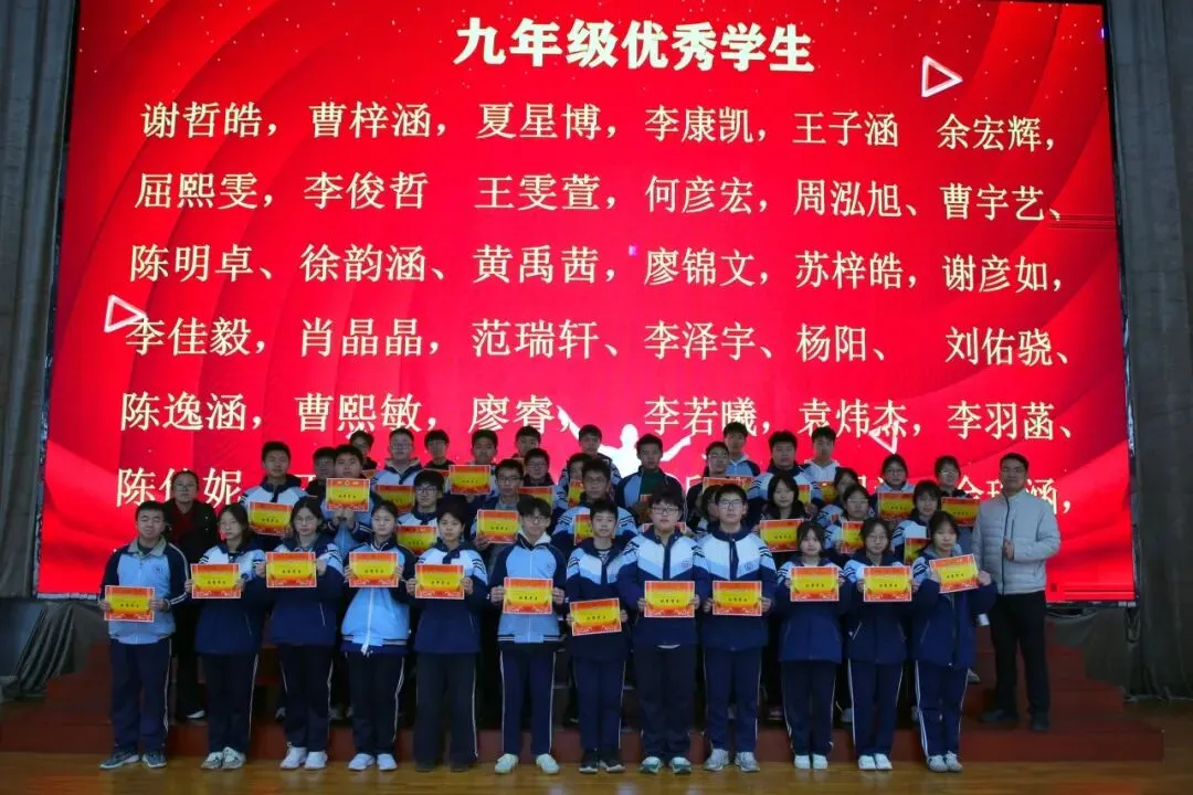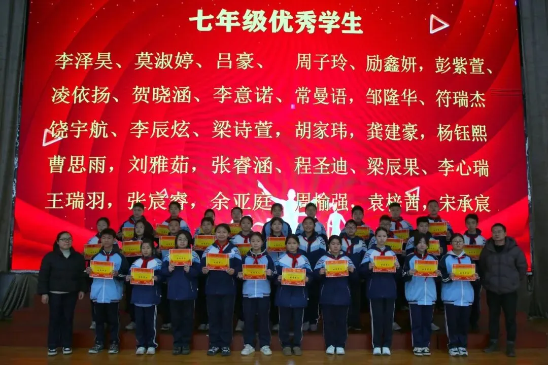 讲话尾声,学校举行了表彰仪式,对各年级涌现出的三好学生、优秀学生、优秀班干部、书香少年等先进个人进行现场表彰。学校为受表彰同学颁发荣誉证书,并合影留念,勉励他们珍惜荣誉、戒骄戒躁、再接再厉,在新学期再创佳绩。同时号召全体同学以先进为榜样,见贤思齐、严于律己、勤奋进取,在校园中营造比学赶超、文明和谐的良好氛围。