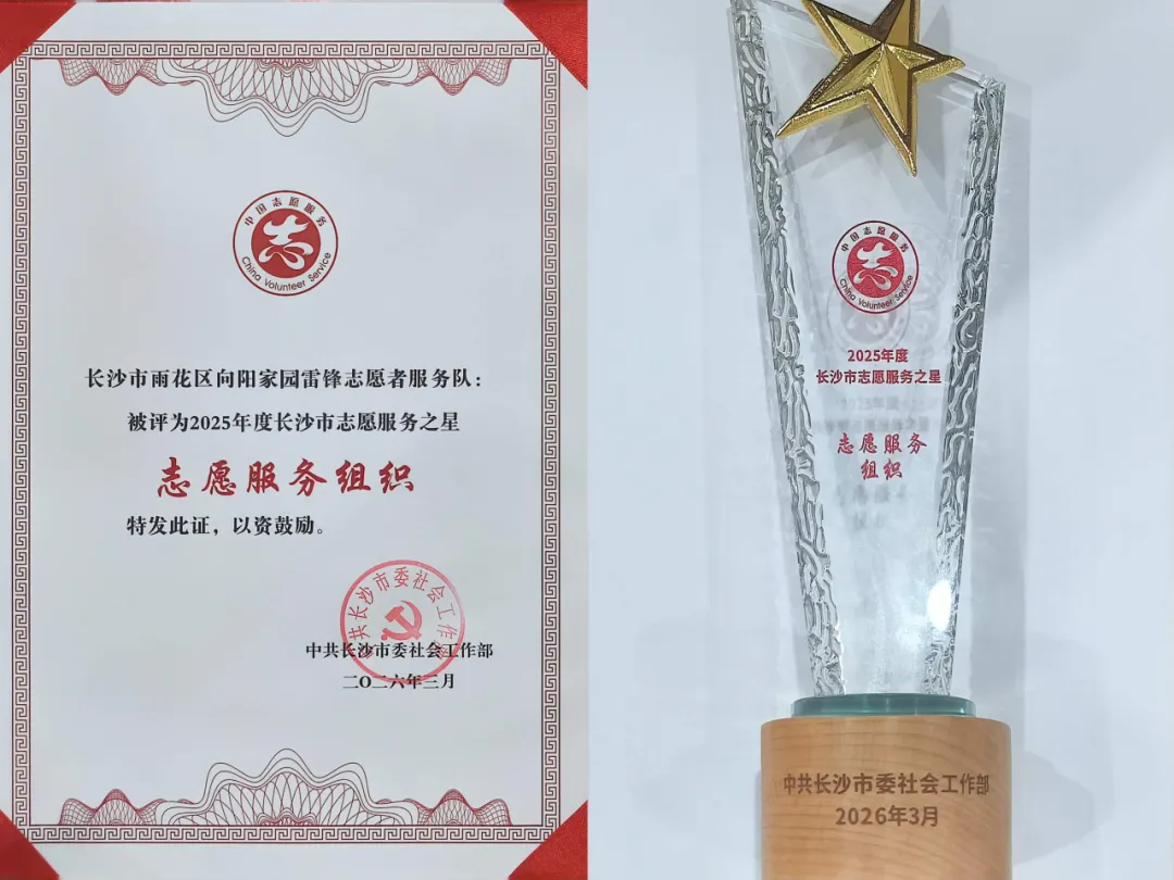 【喜报】长沙市雨花区向阳家园雷锋志愿者服务队获评2025年度志愿服务之星“志愿服务组织”