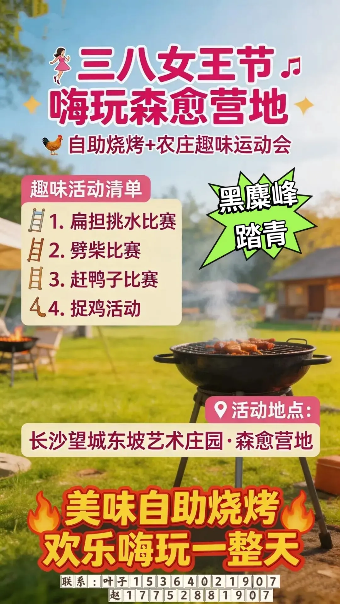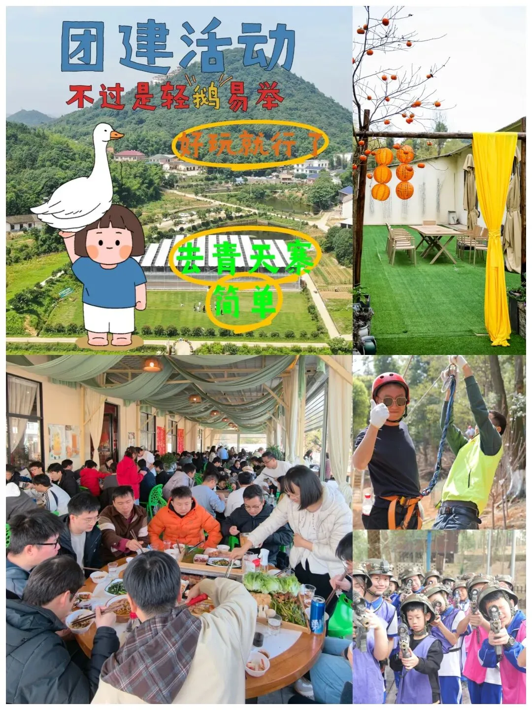 活动内容:植树、踏青、露营烧烤、围炉煮茶、特色农家菜、野炊、手工DIY、趣味运动会、丛林探险、真人CS、皮划艇