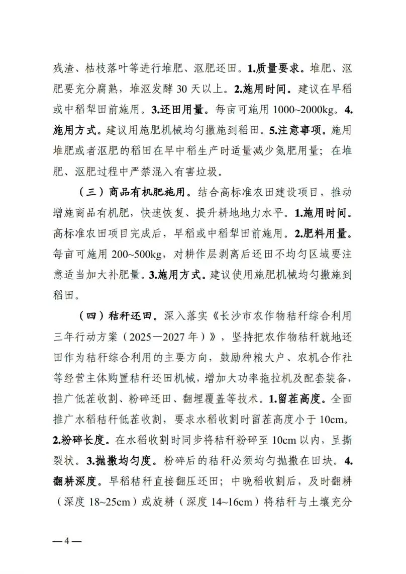 关注 | 长沙市农业农村局关于印发《2026年长沙市稻田地力提升技术方案》的通知