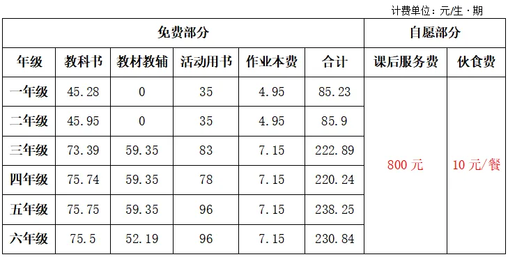 一、本校免收课本费、教辅资料费、作业本费,学生只需缴纳少量自愿选择的服务性收费。
