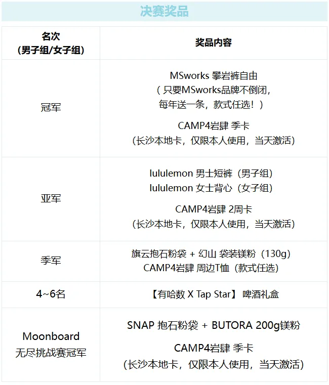 MOONBOARD无尽挑战赛 18:30-19:00• 现场报名,仅限非决赛圈选手参与,名额限12人,报满即止,按抽签顺序依次上场。