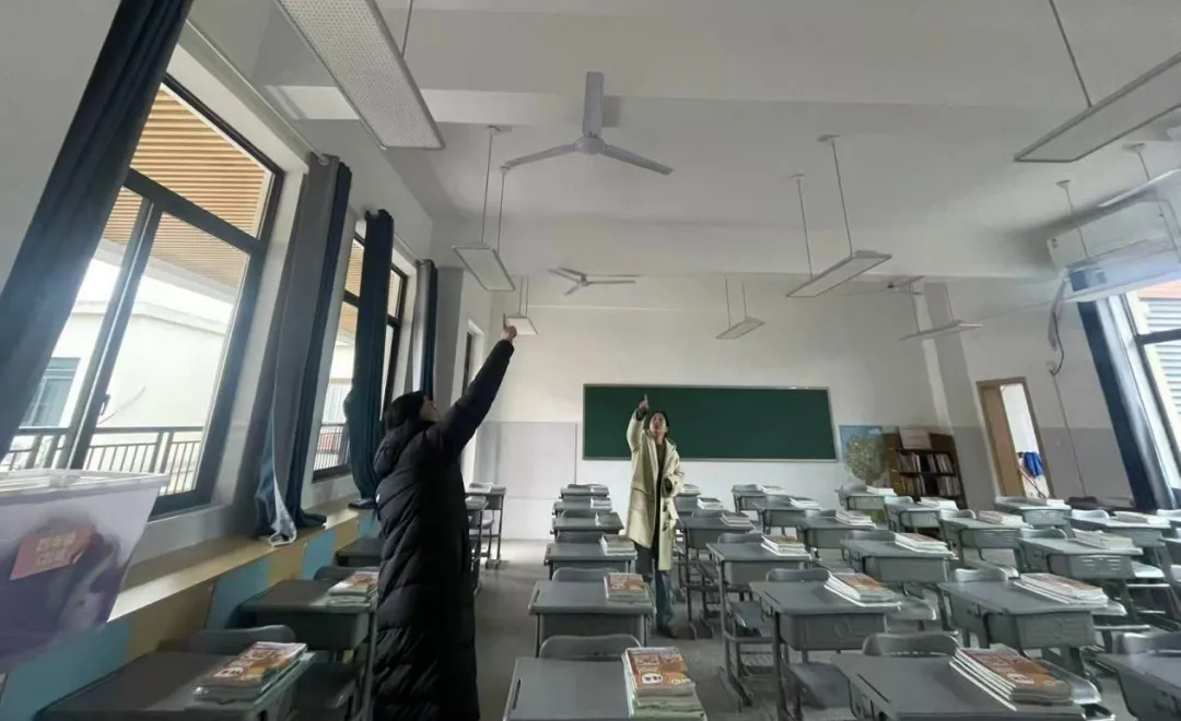 钱劲副校长、刘琨副校长、毛雁副校长、苏曼丽副校长分别带队走进1-4栋教学楼,与成员逐一检查教室门窗、护栏、照明、风扇、多媒体设备、饮水机、消防设施及走廊应急照明,不放过任何一个角落。