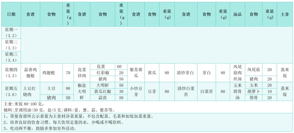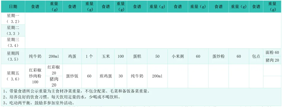 第1周学生带量食谱
