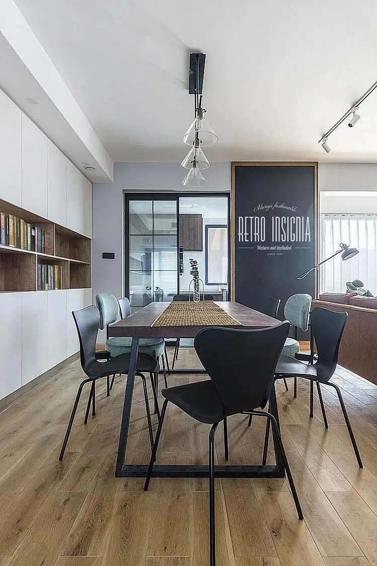 年轻人要的现代时尚感,老人家要的厚重耐看感,孩子要的活动区,涂鸦区(左侧黑板墙)都得以实现。