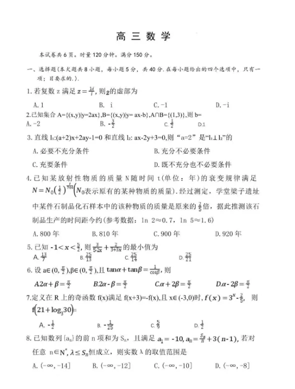 长郡中学2026届高三月考试卷(六)数学.pdf