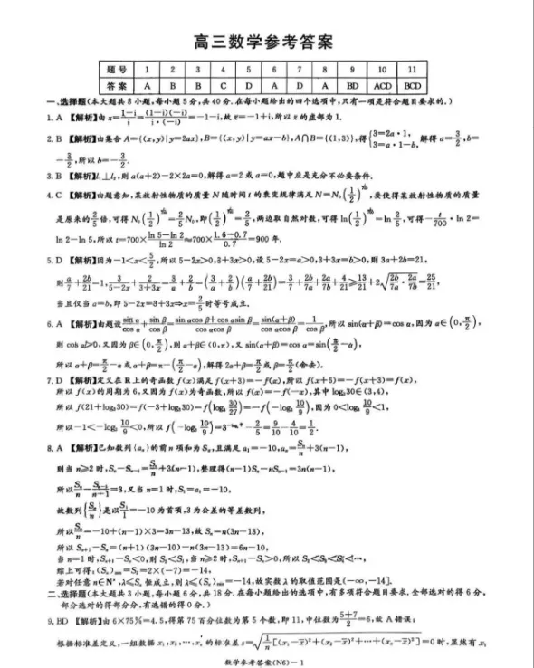 长郡中学2026届高三月考试卷(六)数学答案.pdf