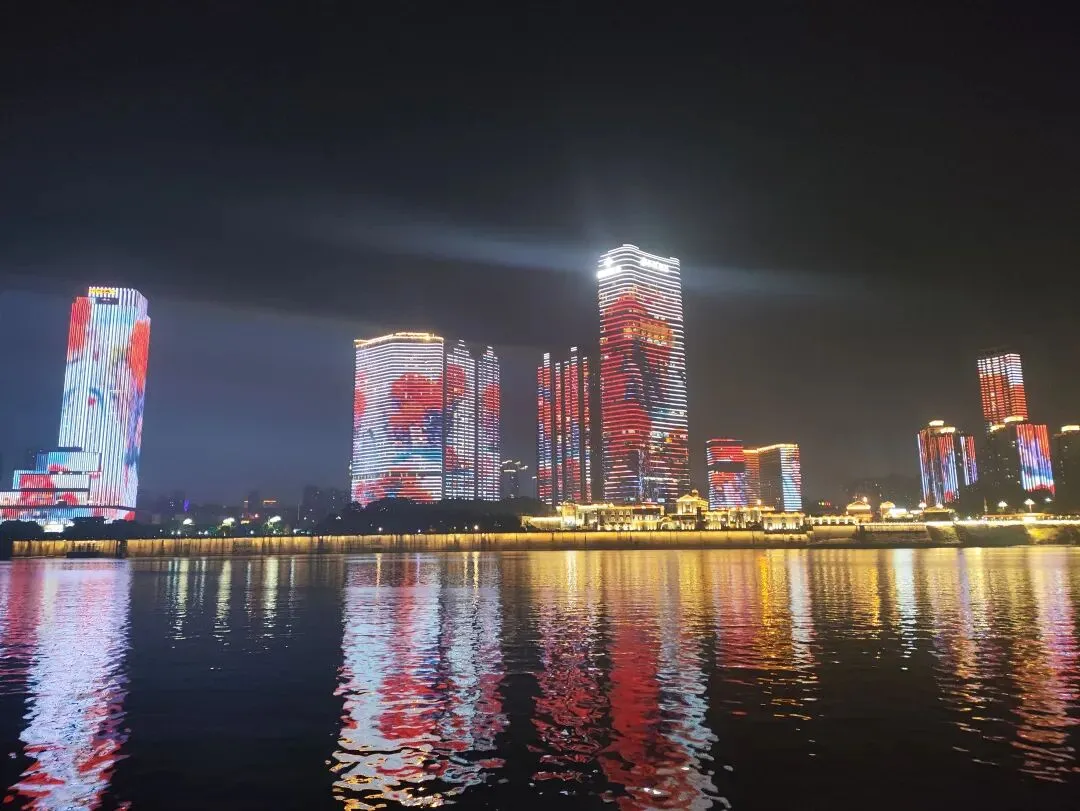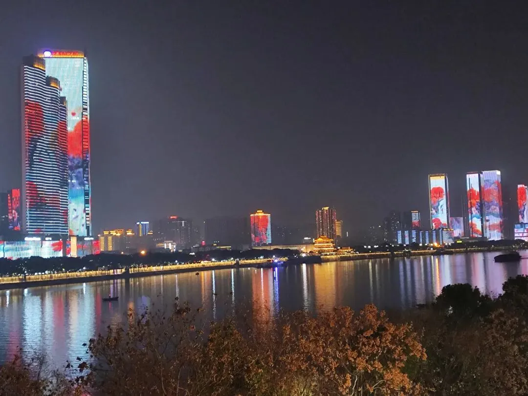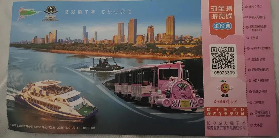清晨的老街安静了很多,没有了夜晚的喧嚣,走在微微湿润的石板路上,感受下湖湘文化的渊源底蕴。路上看到了长沙“阁楼体”书写方式,和南昌非常像。“南昌”二字组成的是滕王阁,“长沙”二字组成的是杜甫江阁吗?但实话实说,长沙的灯光效果大多集中在湘江东岸,与南昌赣江两岸的璀璨夜景相比,显得有些单薄,灯光秀效果也逊色一些。夜幕之下,主席炯炯有神的双目望向远方,好似看到了中国未来的星辰大海。当下战乱笼罩的世界,更能深刻感受毛主席的丰功伟绩和高瞻远瞩。橘子洲没有门票,预约即可。进入后选择步行或乘坐观光小火车,小火车全价40。其实如果时间充裕,在橘子洲走一走,是很惬意的,只不过我们到时已临近闭园,时间紧张,老爸实在走不快,才选择了观光车。橘子洲除伟人雕塑外,还有其他不少景点,只可惜天色已晚,都没有看到。从橘子洲大桥回望橘子洲,洲上灯光朦胧,勾勒出西岸岳麓山的轮廓,不禁想起主席的《沁园春·长沙》。