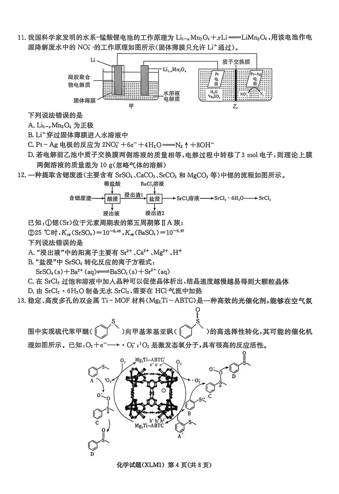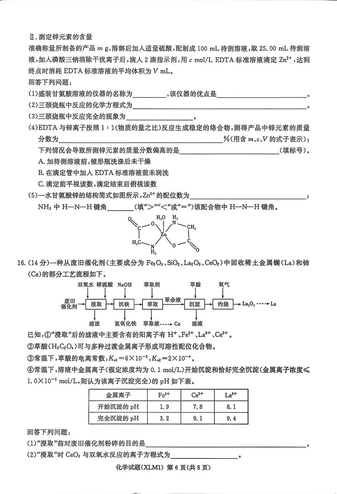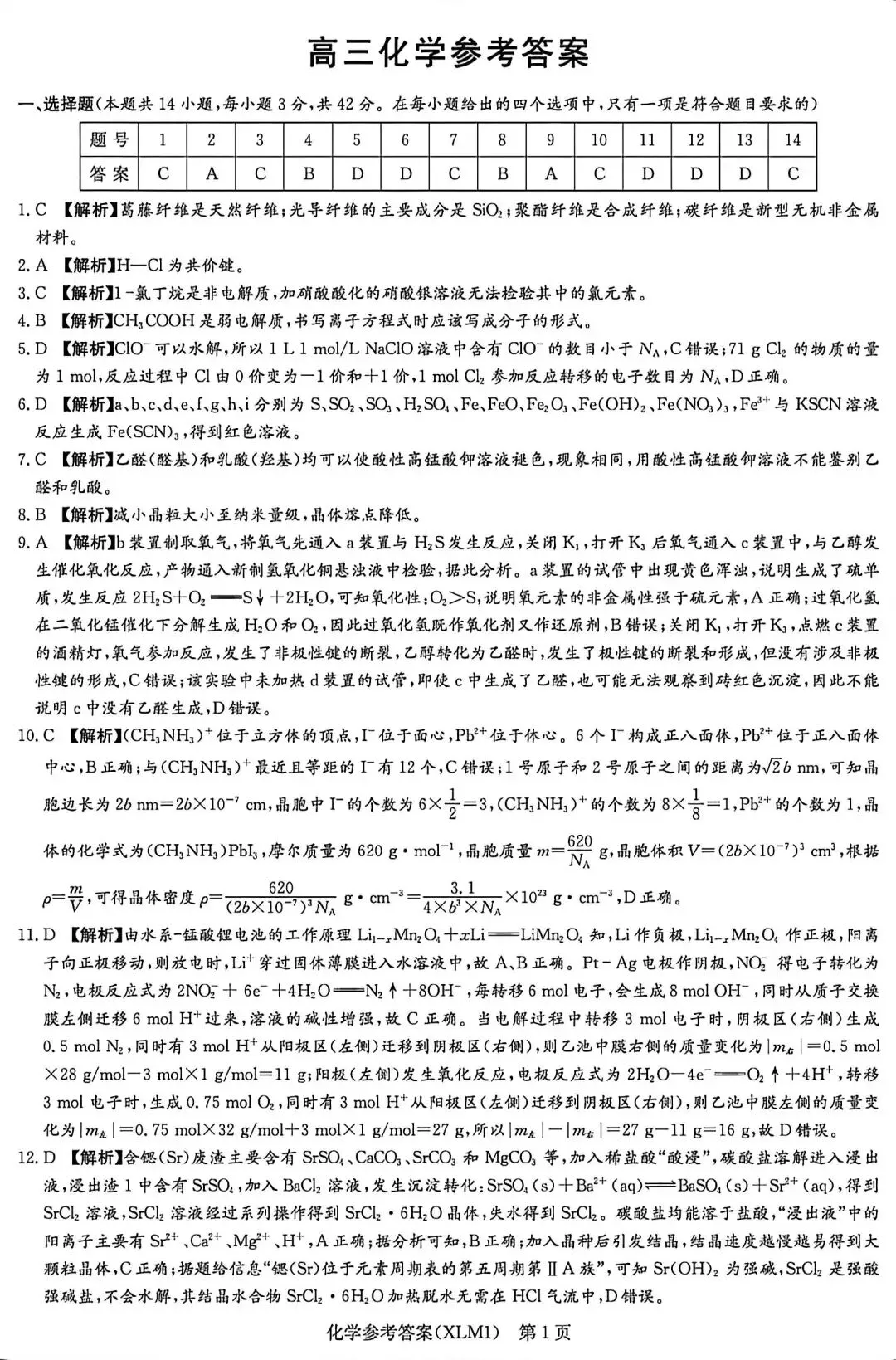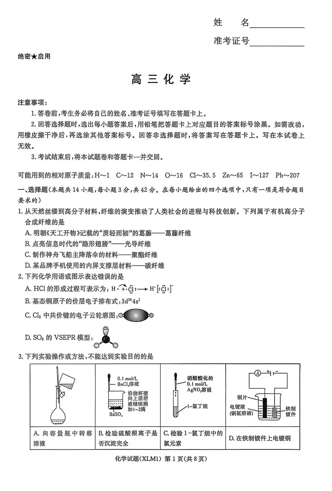 >湖南省长沙市长郡中学等校2026届高三3月二模化学试题