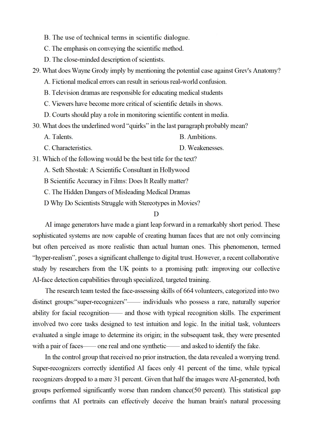 当前位置:首页>长沙>湖南长沙市雅礼中学2025-2026学年高三下学期开学英语试题及答案
