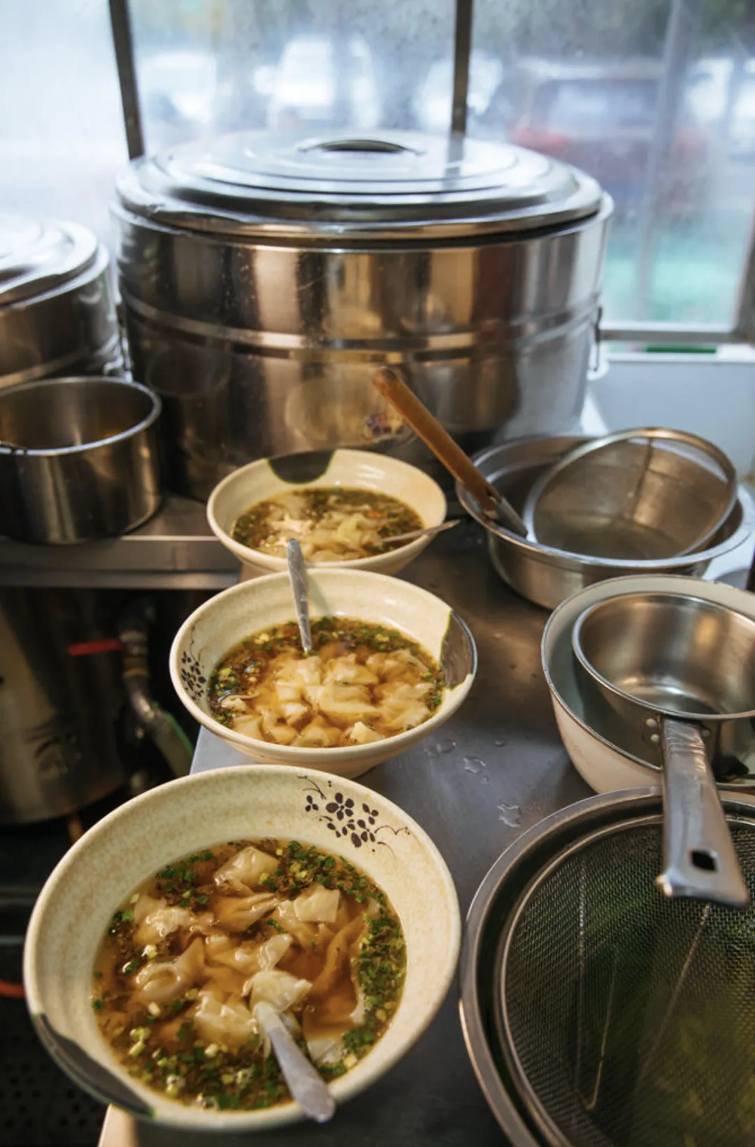 那时的馄饨店更小,厨房里还不是现在的三个商用灶头,就一个家用燃气灶,一口锅,来一人煮一碗。老板是个60岁左右的大爷,和妻子一起忙活这个店,白天唱唱歌喝喝茶,下午4点后才开门,女儿偶尔过来帮帮忙,做的是周边邻居的生意,也算是客源稳定。