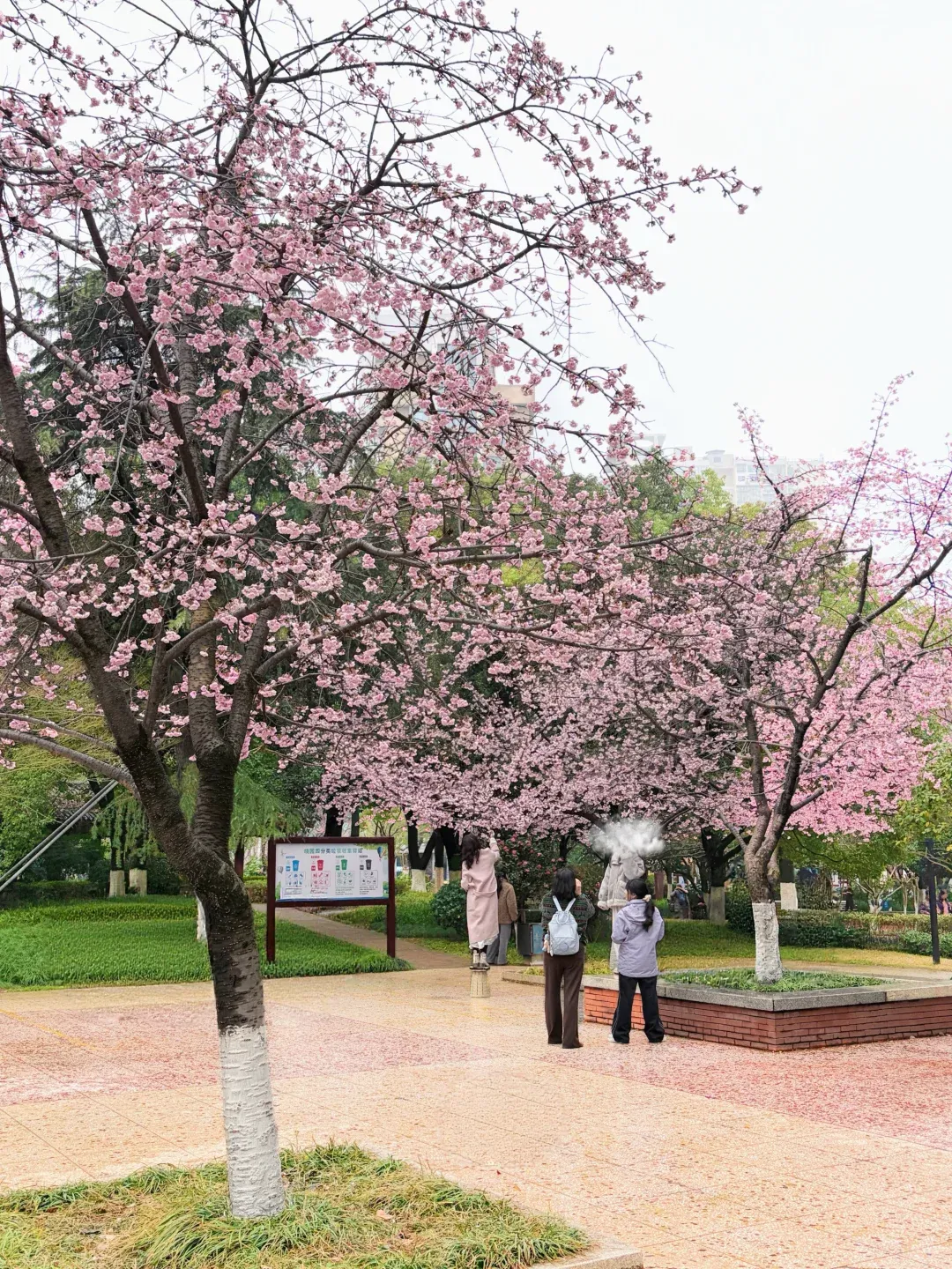 公园中心的几株樱花树真的太友好了!