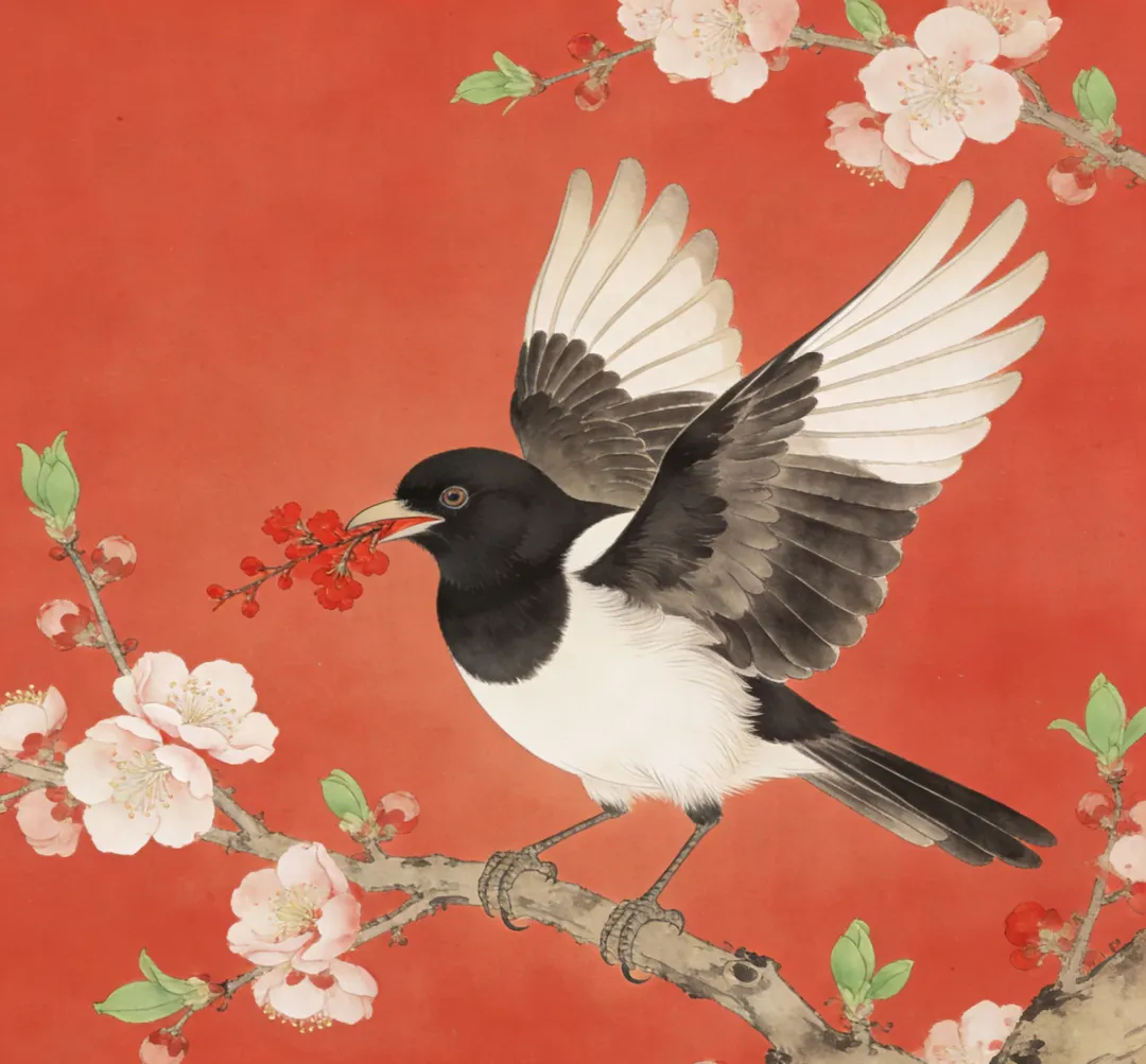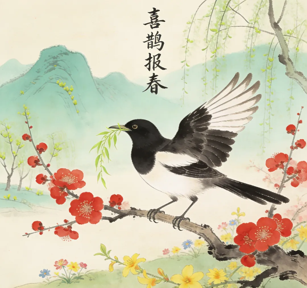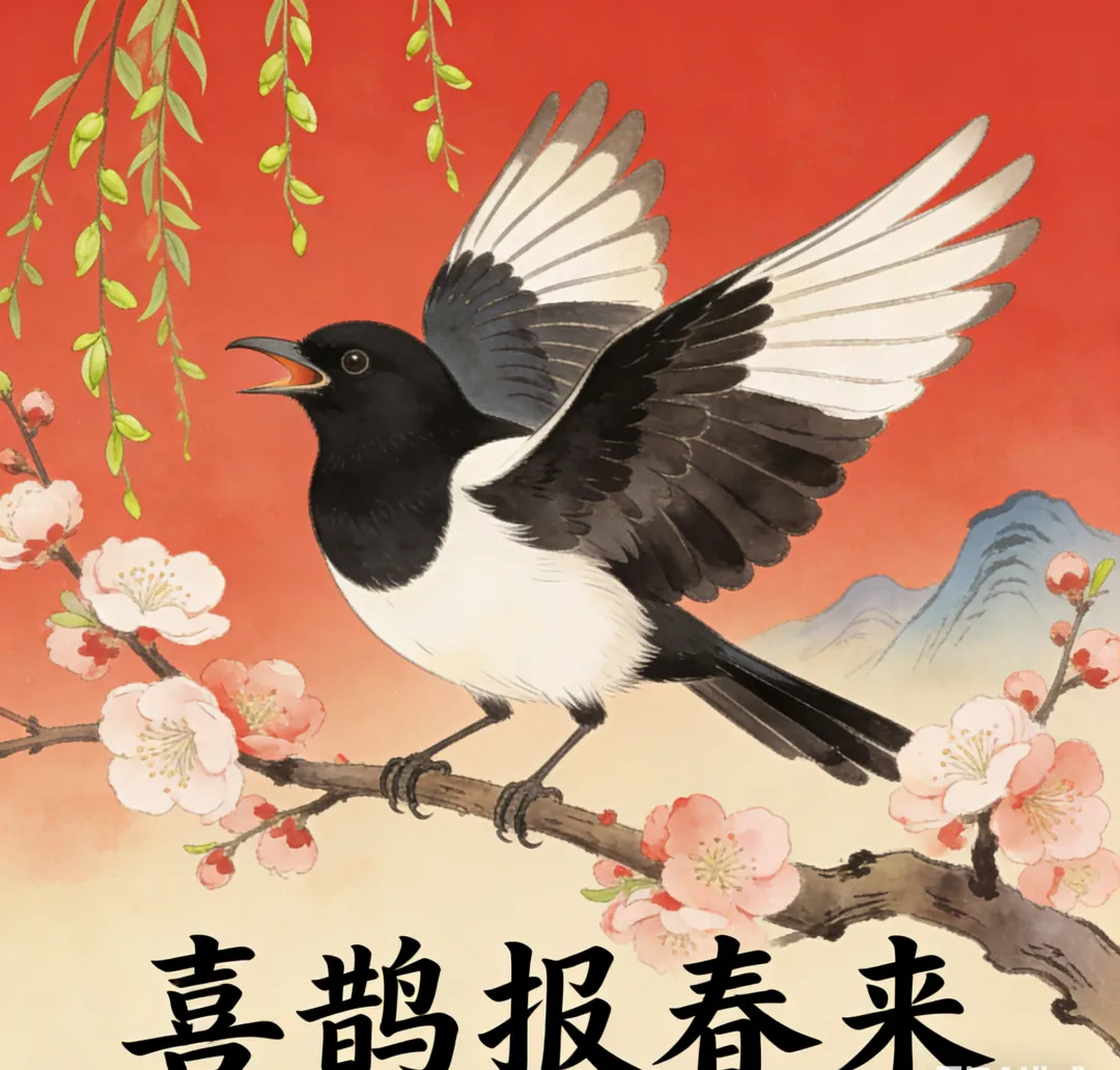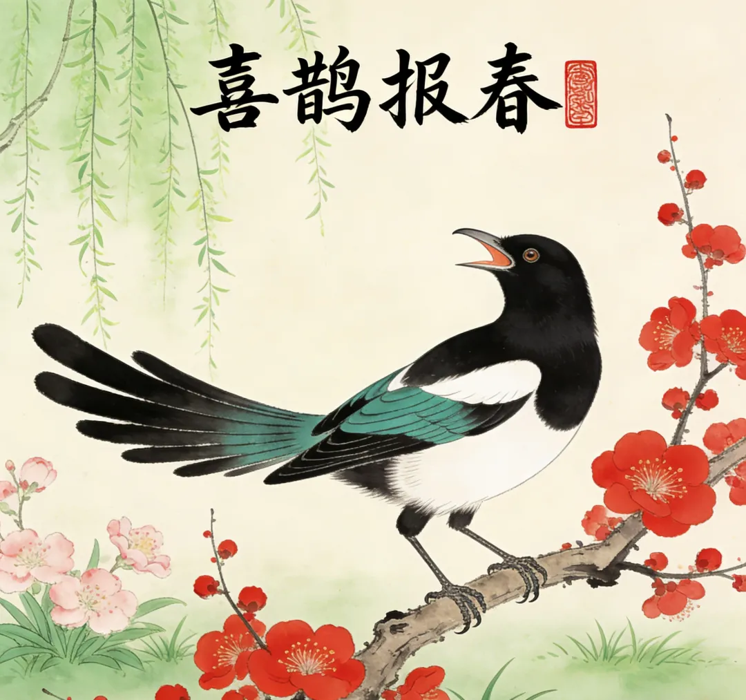 喜鹊 报喜之鸟 将抽象的"喜讯"具象化,且"喜鹊知"暗示家人对游子的牵挂,从侧面烘托孝行之双向性。