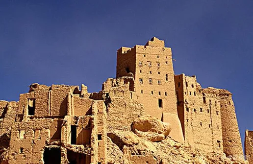 19. 读下图,西亚的碉堡房窗户较小,墙厚,体现了当地的自然环境是()