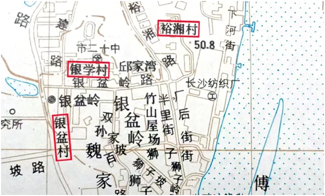 1986年《长沙市地名录》载银盆村、银学村、裕湘村位置