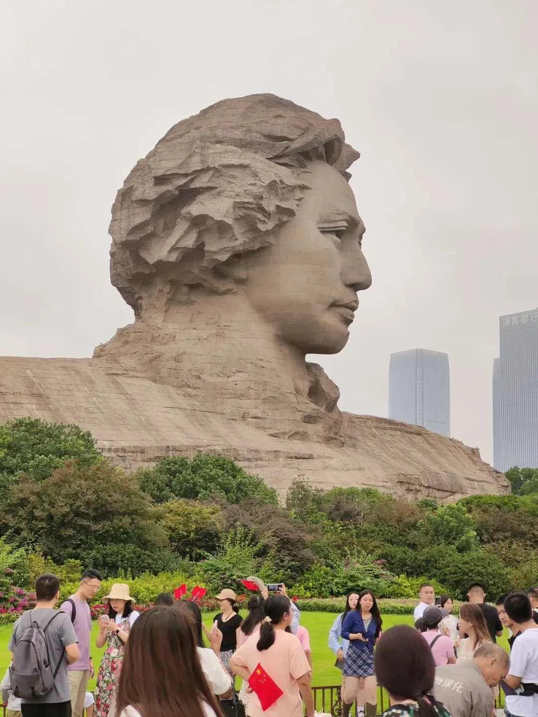 来到橘子洲,江风拂面,洲上绿意葱茏,乘坐小火车穿行林间,目光所及皆是生机。伫立在青年毛泽东雕像前,仰望那份从容与豪迈,“独立寒秋,湘江北去”的诗句涌上心头,家国情怀与山河壮阔在此刻相融。傍晚灯光亮起,江水泛着暖光,游人如织却不喧闹,只剩岁月静好。