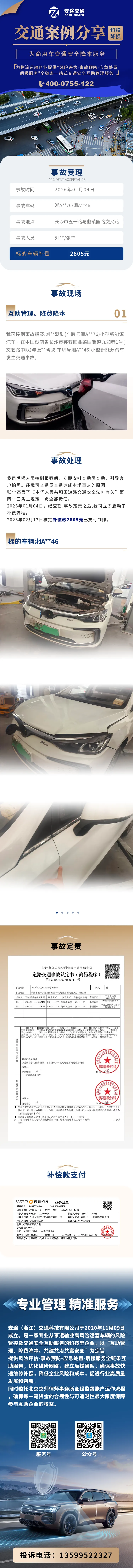 补偿案例|长沙市交通事故,安途交通补偿2805元到账
