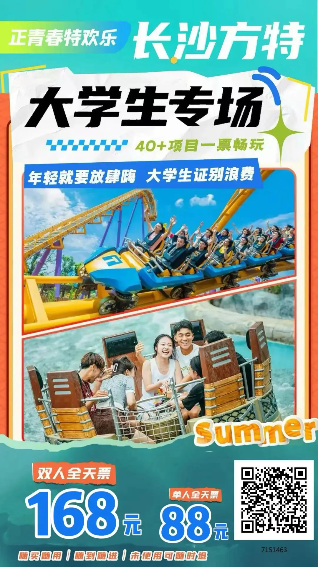套餐内容:长沙方特大学生特惠票(随买随用,随到随进)