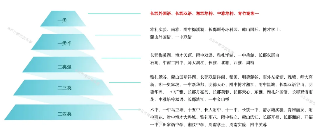 湘郡培粹、中雅培粹、青竹湖湘一、长郡双语和长郡外国语。