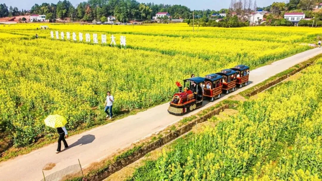 油菜花海自费项目:观景塔楼10元/人,轨道小火车25-30元/人;