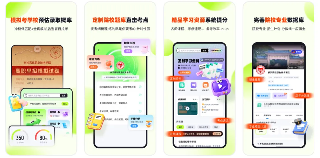 -精准提分:① 考点专练:针对院校单招考纲拆解专项训练,薄弱点精准突破; ② 智能组卷:全真模拟测试还原考场; ③ 学情分析:动态数据监控学习指导