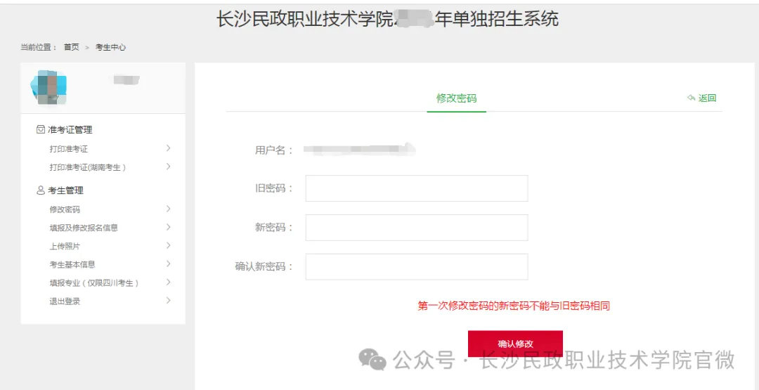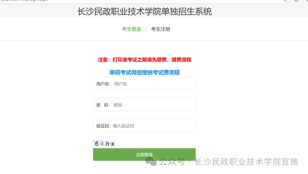 1.登录我校招生系统。网址:https://dzxt.csmzxy.edu.cn/login.aspx,用户名使用考生身份证号,初始密码为身份证号后6位,最后一位如果是x ,请用小写。