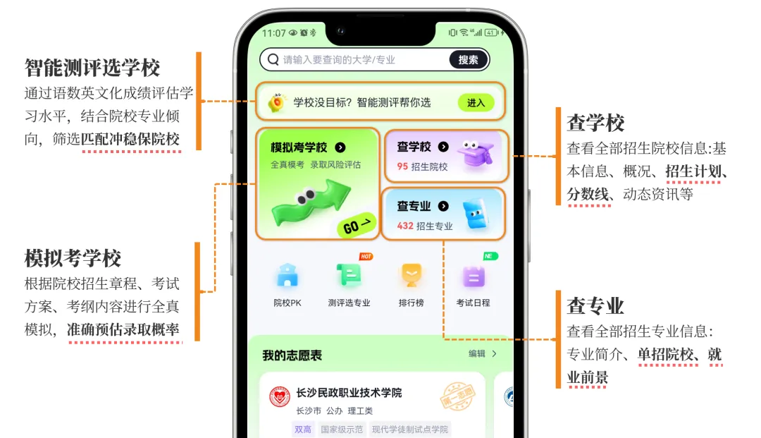 -智能择校:摸清你的基础和意向,精准推荐“冲、稳、保”院校组合,不用再盲目对比