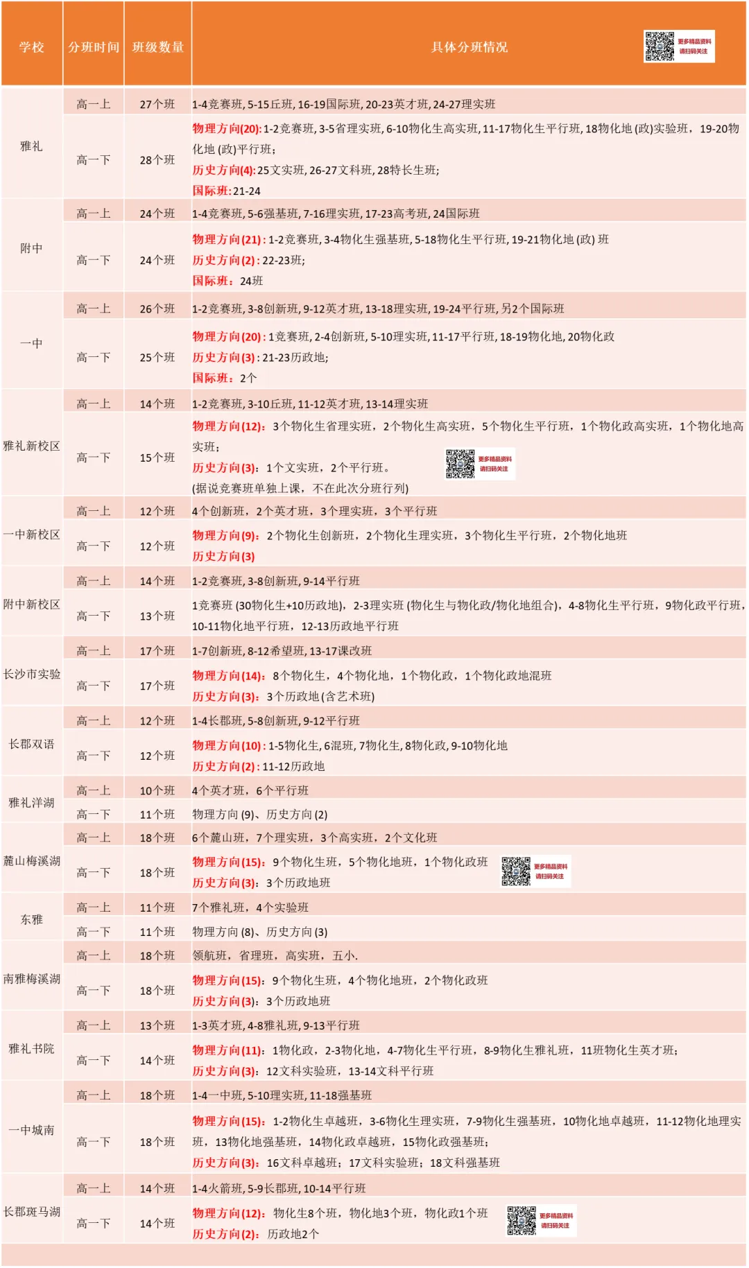 为了方便大家查看,整理了长沙几所核心高中的分班关键信息,一目了然: