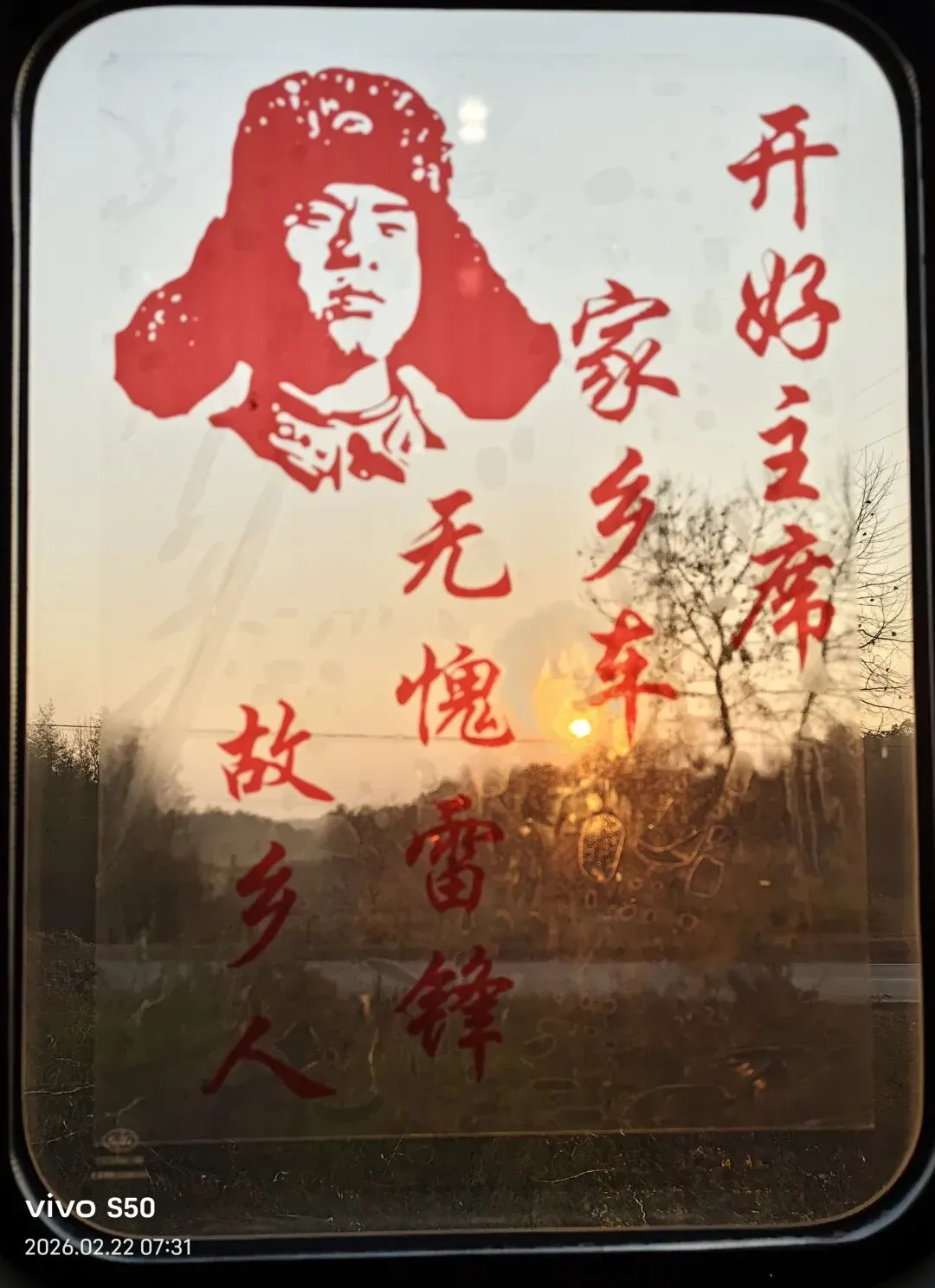 “开好主席家乡车,无愧雷锋故乡人。”