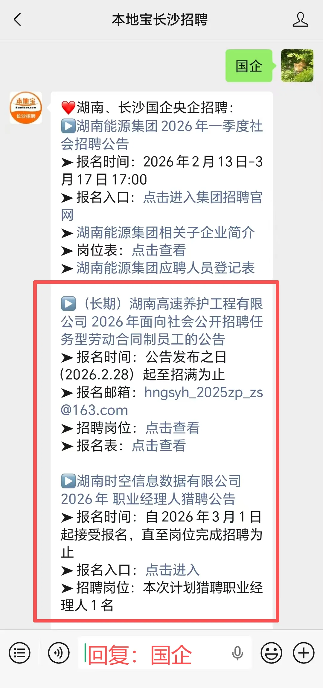 搜索微信公众号【本地宝长沙招聘】,关注后对话框回复【35】可获湖南长沙35岁以上有岗的招聘汇总相关信息,持续更新。