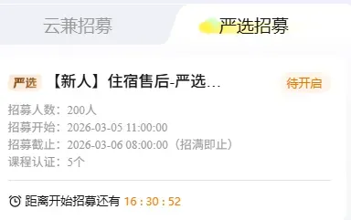 新人(之前没有参加过的)只能看到新人招募,如果是之前已经参加过了的话,过了新人期的朋友,在页面上可看到更多招募岗位(比如技能备份岗位的招募)