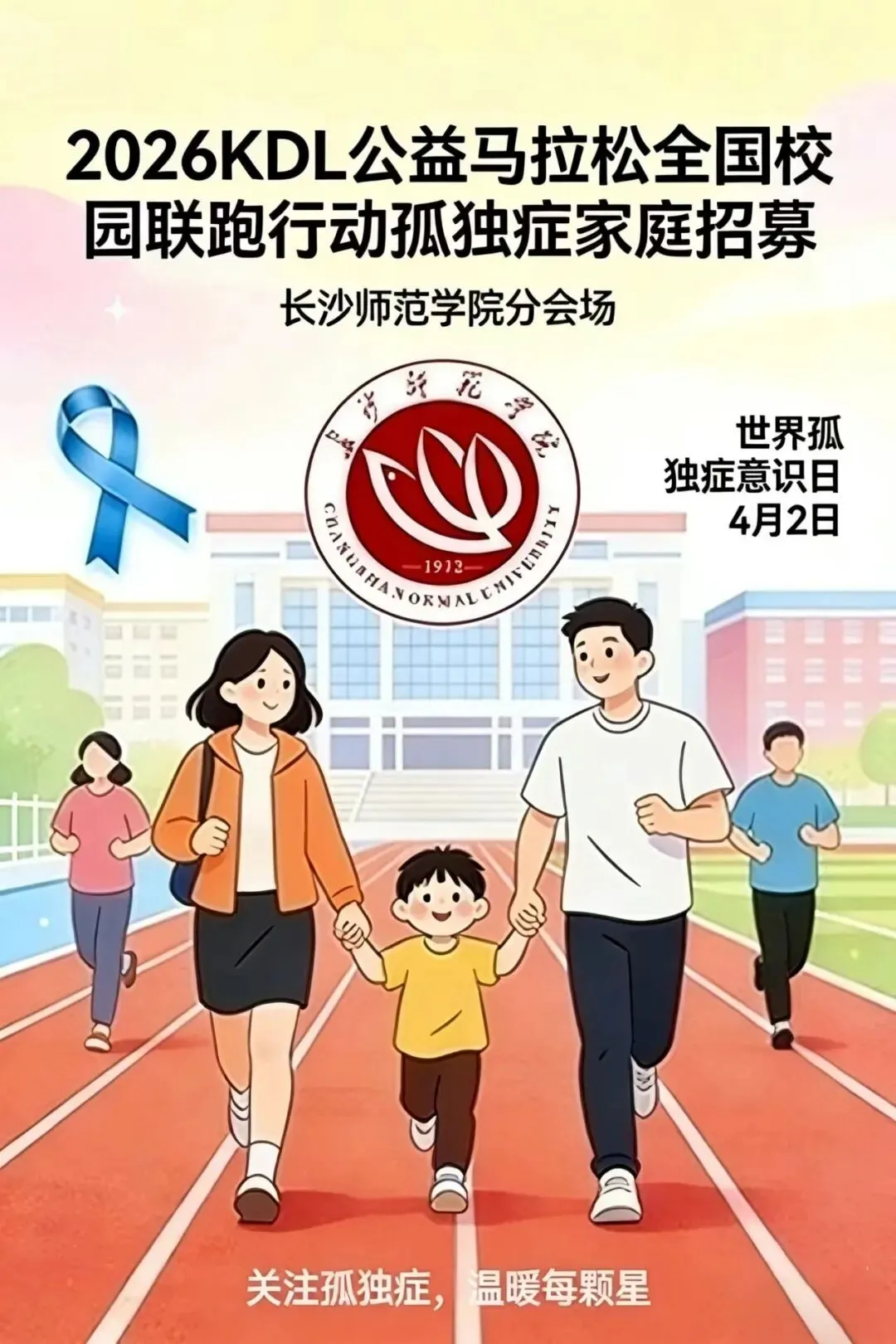 【长沙师范学院分会场报名开启】“用爱奔跑 点亮星梦——2026KDL'世界孤独症意识日'公益马拉松全国校园联跑行动”孤独症家庭招募启动