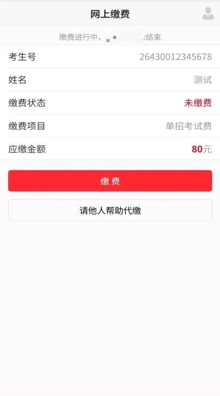 网上缴费提供两种方式,一种方式是使用自己的微信号进行支付,另一种方式可请他人帮助代缴。