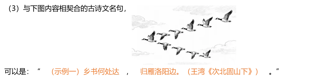 【评分细则】每空1分,有多字、错字、漏字则该空不给分。第(3)小题所填古诗文句子含“雁”字即可。