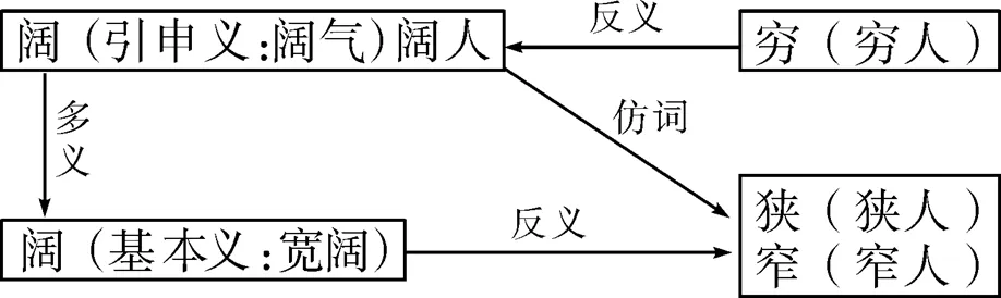 【评分细则】“以引申义‘阔气’为基础,构成‘阔人’”1分;“它与‘穷人’构成反义关系”1分;“随后将‘阔人’中的‘阔’的义项换为基本义‘宽阔’,再取‘宽阔’的反义‘狭窄’,仿造出‘狭人’‘窄人’”2分。字数不符合要求扣1分。