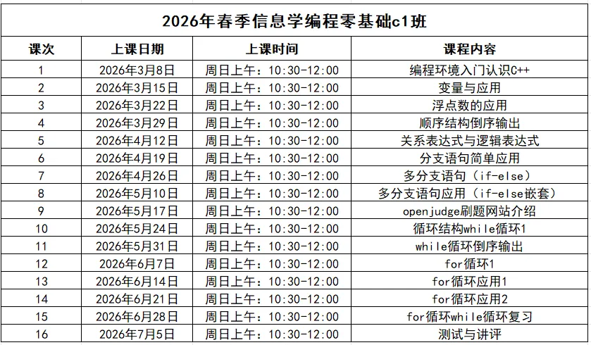 2026年春季长沙市青少年宫CSP-J零基础班