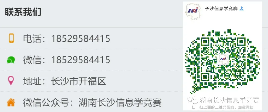 “湖南长沙信息学竞赛”一直致力于湖南青少年计算机信息学编程教育,旨在向那些在中小学阶段学习的青少年普及计算机科学知识;给那些对计算机程序有兴趣的学生提供相互交流和学习的机会;并带领他们通过竞赛和相关的活动培养优秀计算机人才。 湖南长沙信息学竞赛微信公众号团队将在2025年秋季与湖南省机器人科技教育学会“名师来了”教学团队强强联合,创始人王卫老师将直接加入湖南省机器人科技教育学会“名师来了”教学团队。参与信息学竞赛c++编程零基础授课。