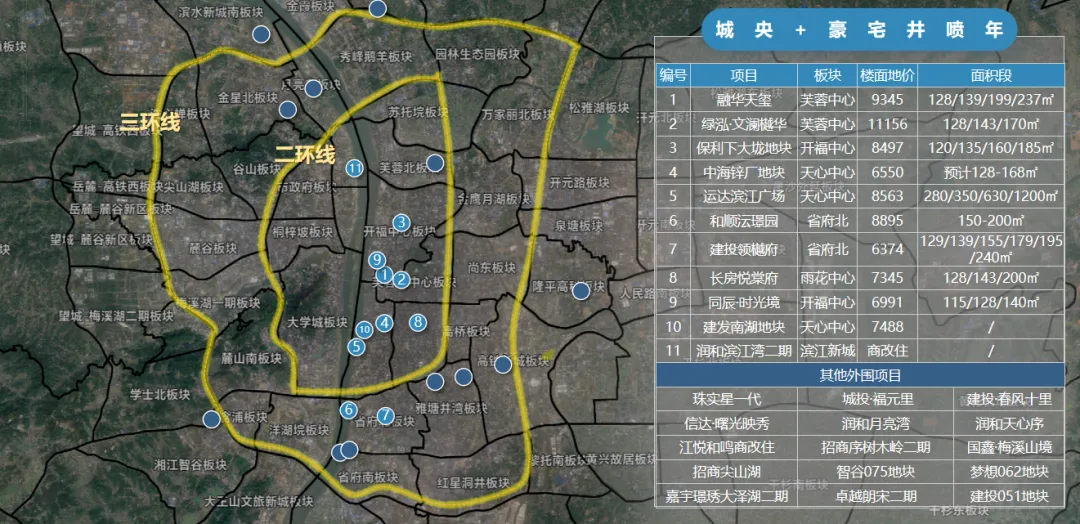 外围项目:珠江璟上花城、城投福园里、建投春风十里、信达曙光映秀、润和月亮湾等