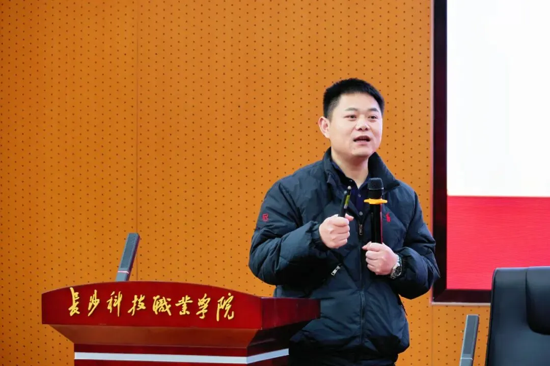 在随后举行的专题宣讲会上,学校理事长邓新平代表学校对益立中职师生的到来表示热烈欢迎,并围绕学校办学定位、特色优势、发展规划等方面作系统介绍。他指出,作为一所新设立的高等职业院校,我校虽年轻但机制灵活、定位清晰,自筹建之初便确立了“专业建在产业链上”的办学思路,目前开设的无人机、人工智能等相关专业,紧密对接湖南“三高四新”战略和区域产业升级需求,均为当下就业市场缺口大、发展前景好的朝阳专业。