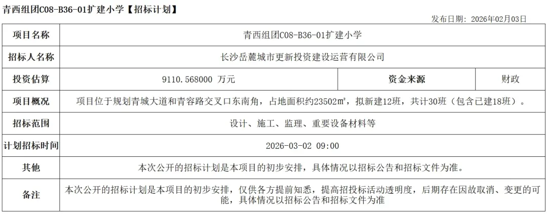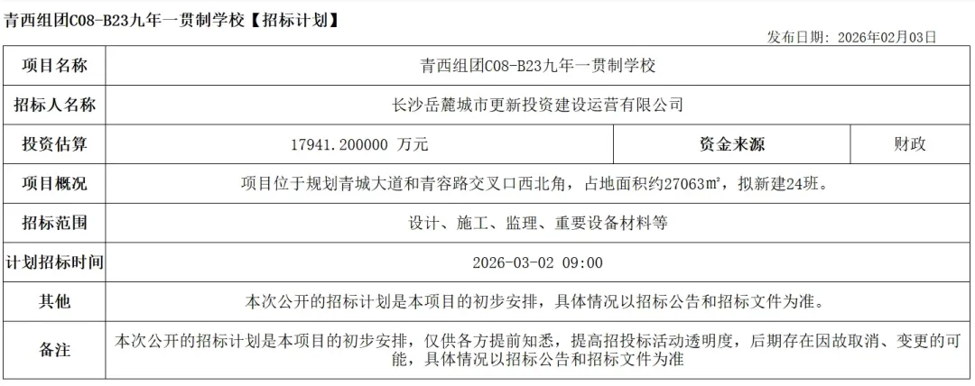 除了以上这些新启动招标的学校外,长沙各区还有多少学校已开工建设,大部分有望在2026年内完成建设并投入使用。